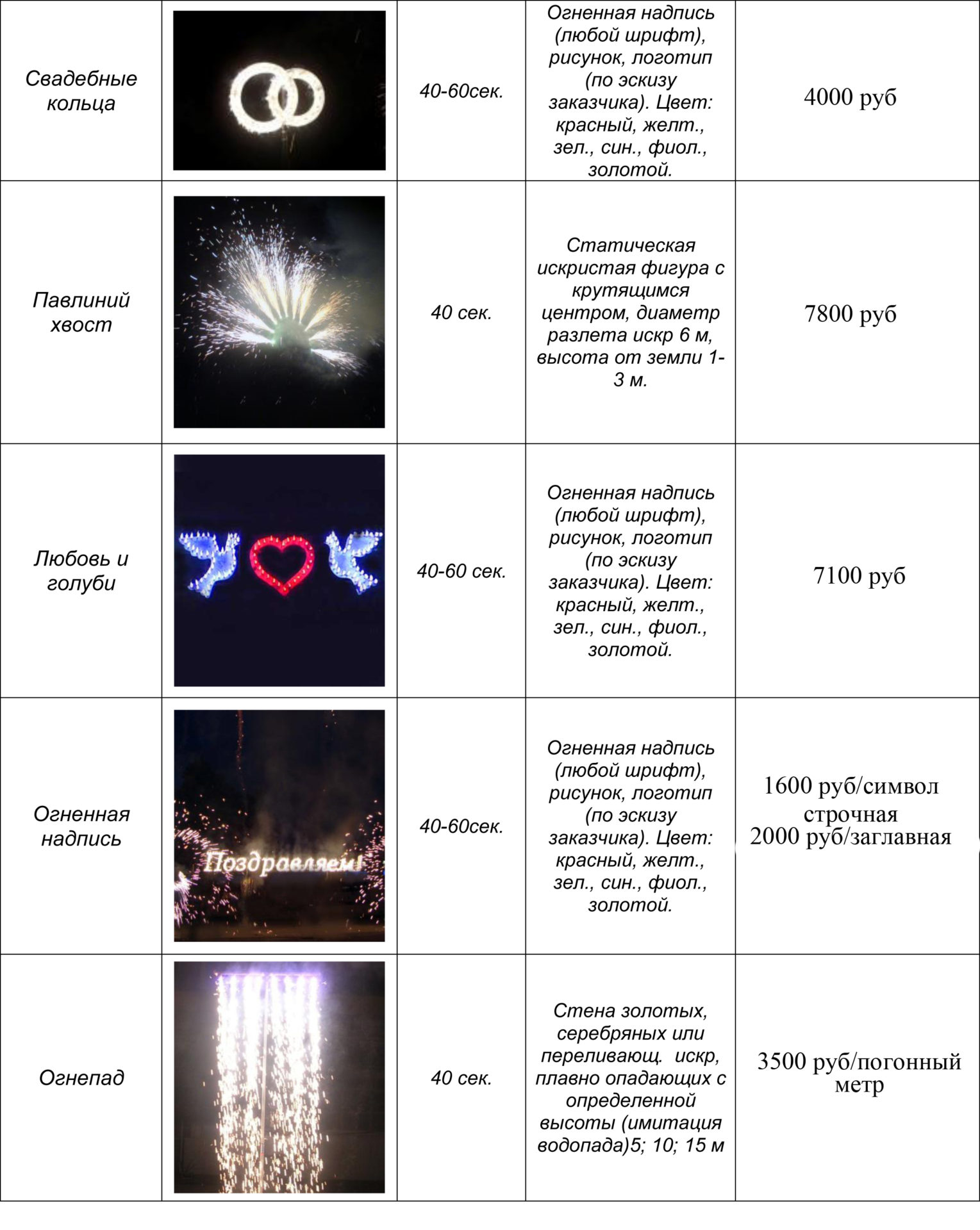 Наземная пиротехника: фонтаны, вспышки, огни, вертушки, веера, а также любые буквы, сердца, логотип. Создадим любую композицию, которая вызовет восторг у виновника торжества. Композиция управляется с пульта управления, отлично создастся эффект неожиданности.