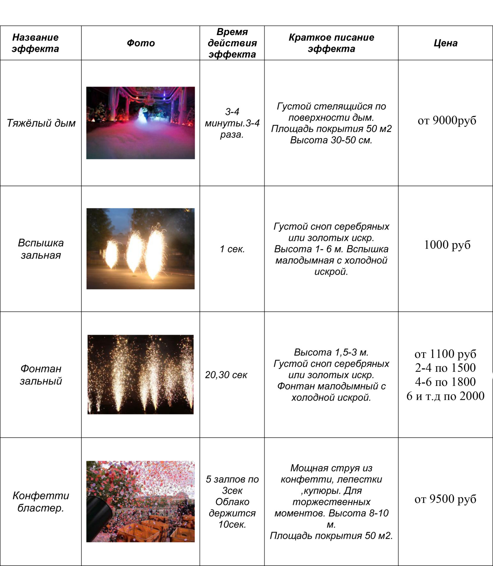 Спецэффекты на праздник придадут ему неповторимую изюминку! У нас есть любые спецэффекты для придания завораживающей торжественности вашего мероприятия!