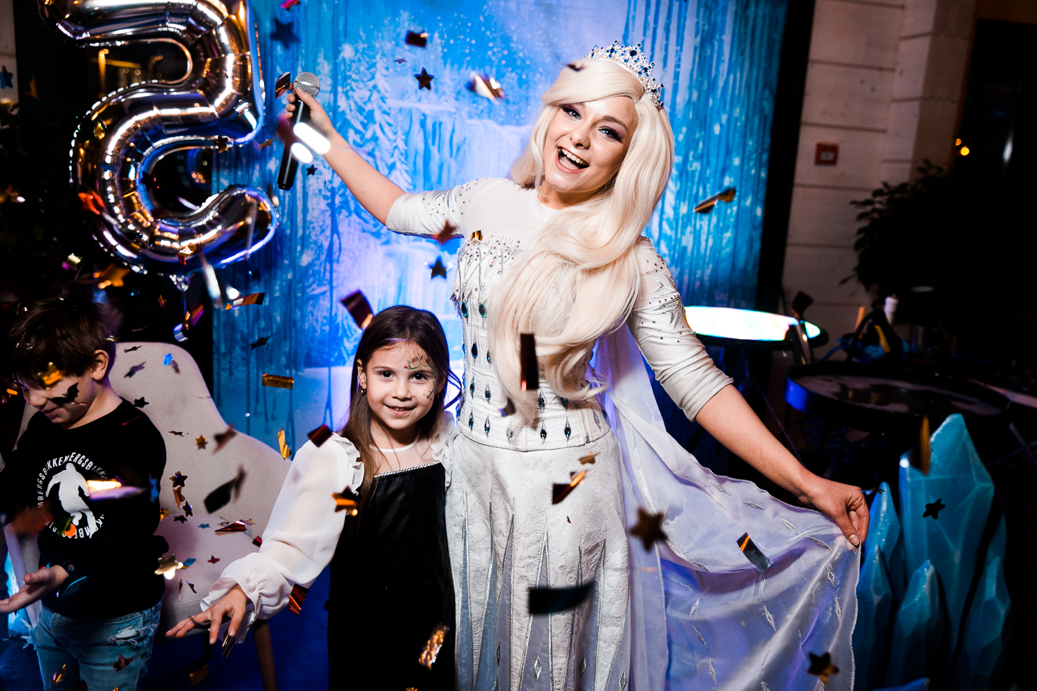 — В конце выступления деток ожидает волшебство: в кульминационный момент программы появляется снег, по сюжету Эльза с детками должны вернуть все времена года на свои места, снег – символ того, что все получилось