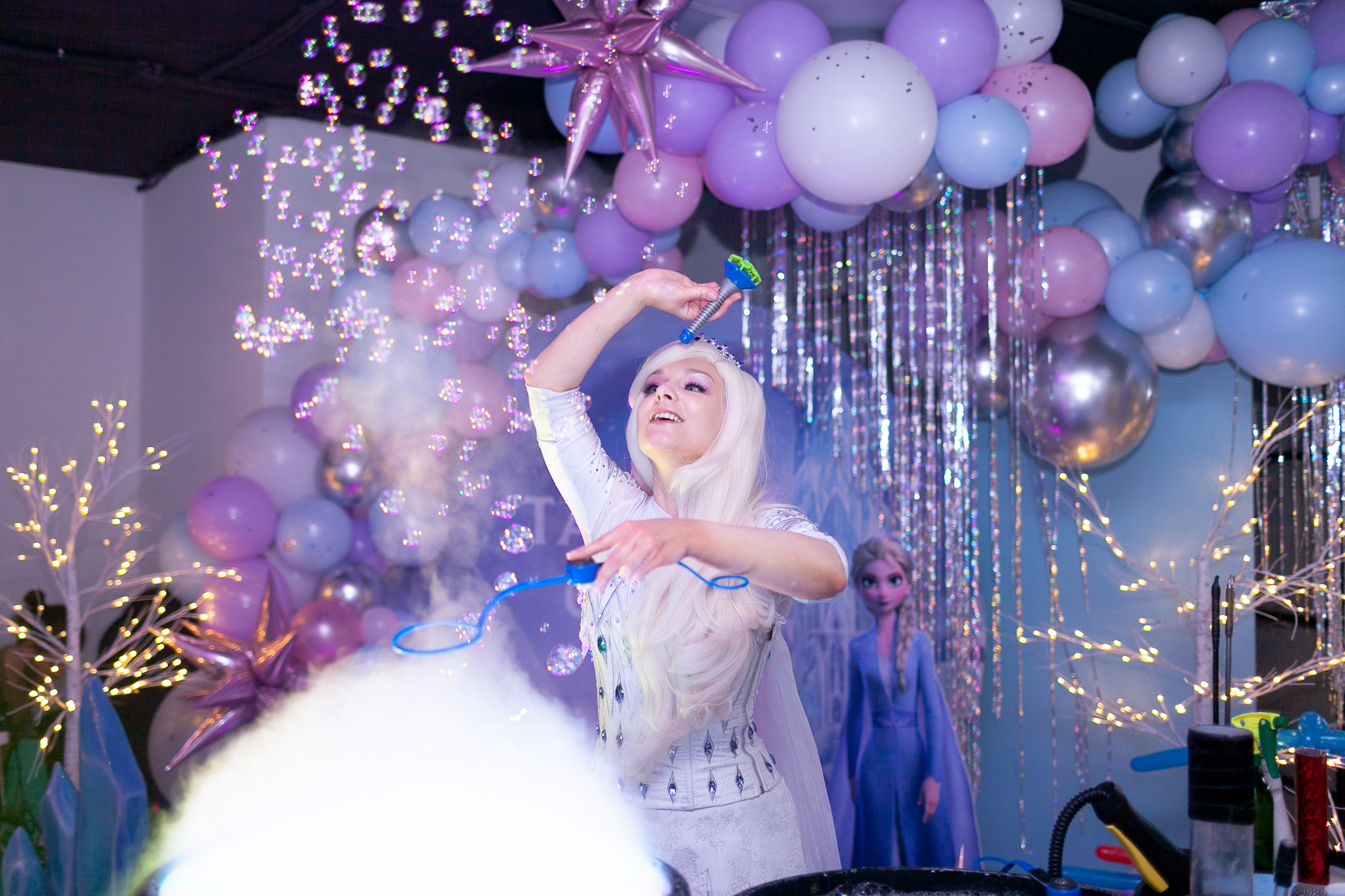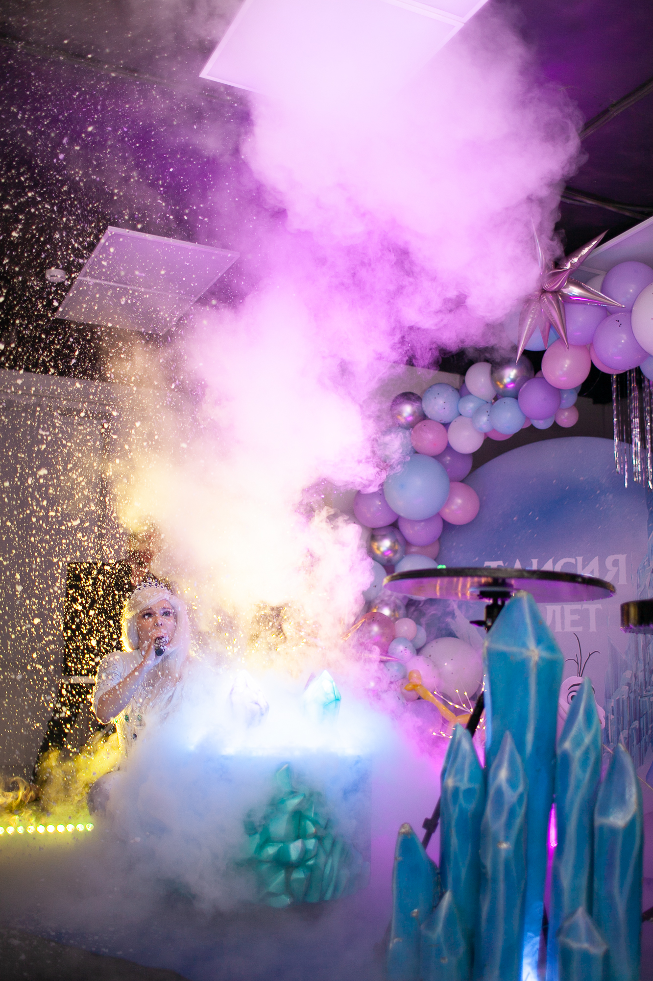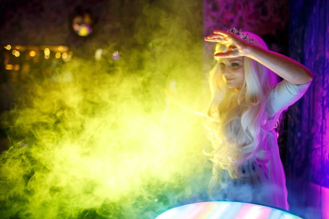 Привозим с собой профессиональное световое оборудование, помещение заливается волшебным цветным светом: настоящая сказка начинается еще до того, как артист вышел на сцену