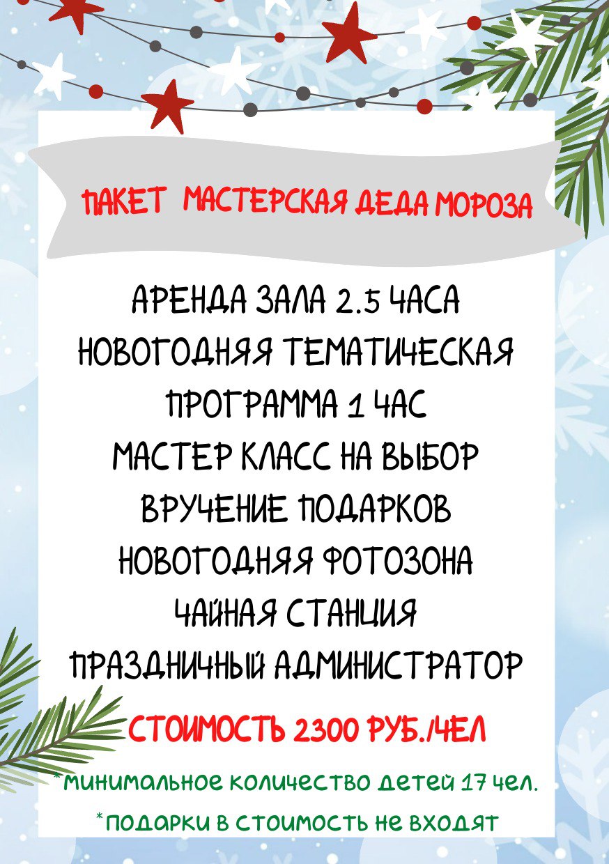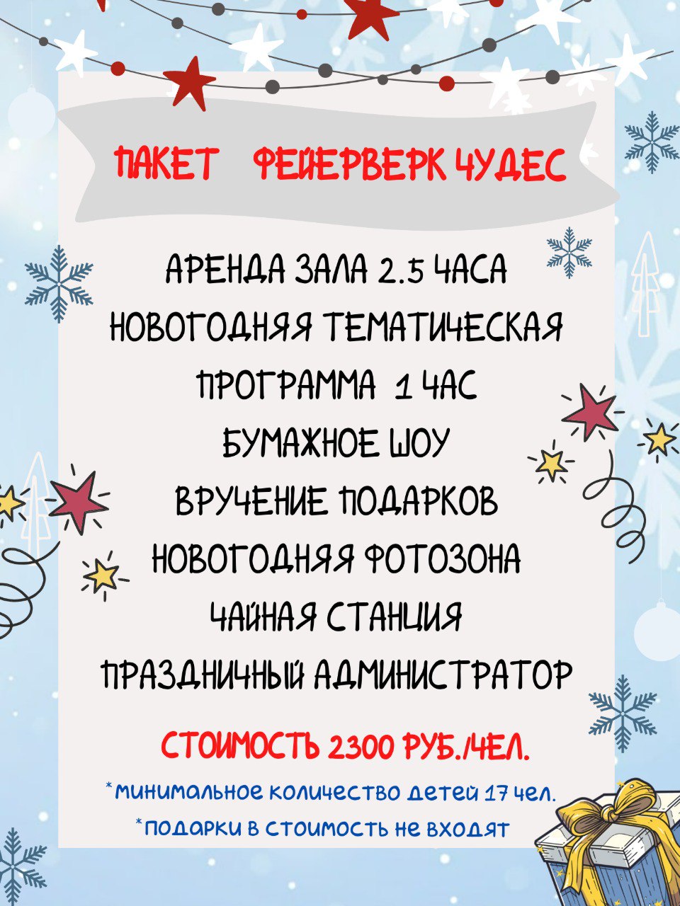 Приходите отмечать наступающий новый год к нам в лофт. Пакетные предложения для любого детского коллектива от 17 детей. Новогодняя тематическая программа предоставляется на выбор.
