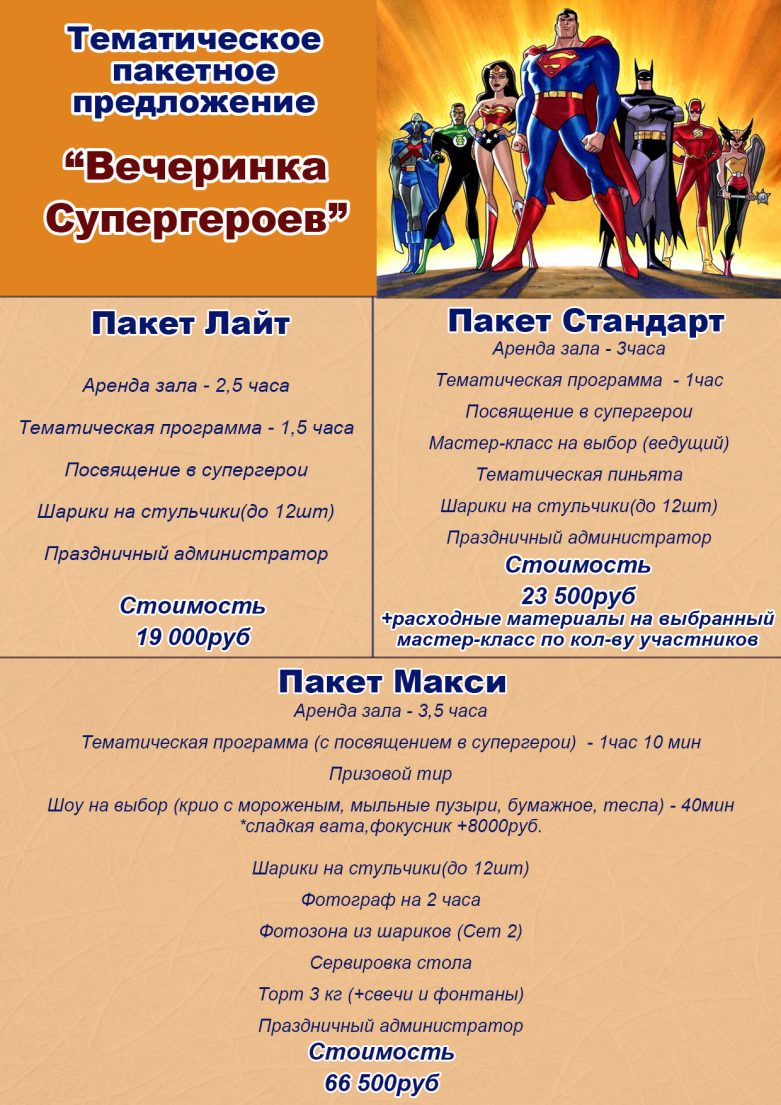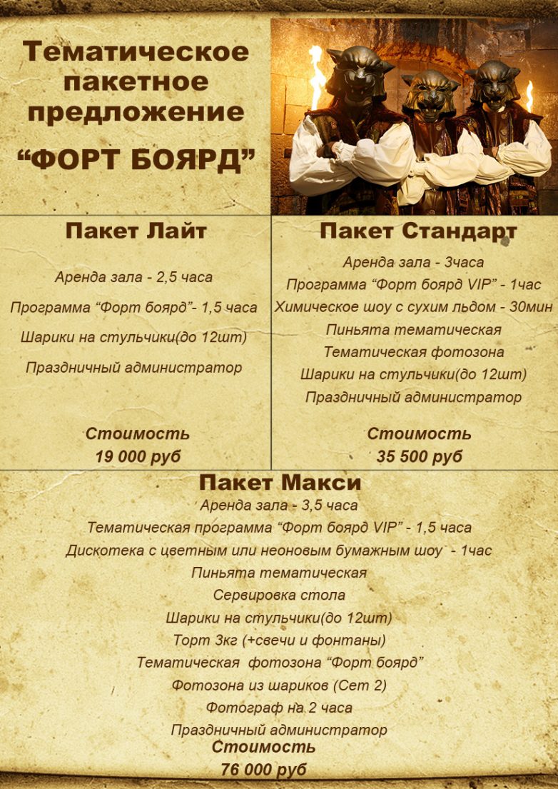Тематические пакетные предложения пополняются, актуальный список уточняйте у администраторов по телефонам 8-926-899-80-84 и 8-964-566-40-89