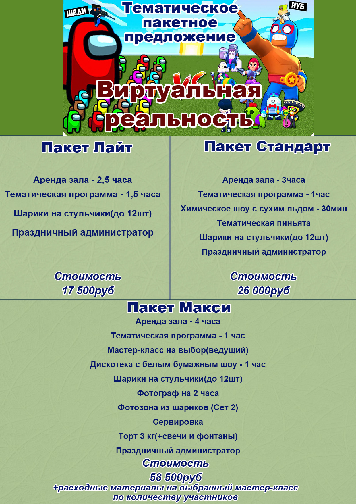 ТЕМАТИЧЕСКИЕ ПАКЕТЫ НА ДЕНЬ РОЖДЕНИЯ(список пополняется, уточняйте у администратора)